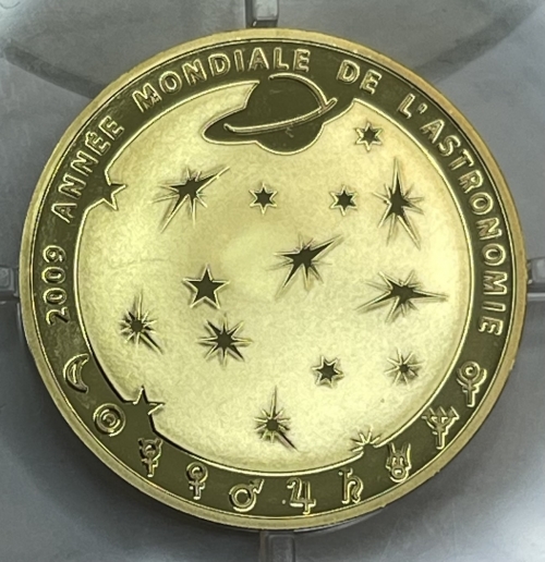 Продолжает астрономическую тематику Французская Республика. Дело в том, что в 2009 году отмечается еще и 40-летний юбилей первой высадки человека на Луну. Парижский монетный двор выпустил первую в мире серию монет выпуклой формы, запечатлев след ноги астронавта в металле.