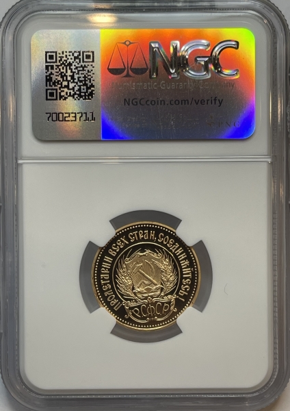 На реверсе изображен крестьянин-сеятель на фоне плуга, восходящего солнца и заводов. По окружности — надписи, обрамленные кругом из точек: вверху — ОДИН ЧЕРВОНЕЦ, внизу слева — год выпуска.