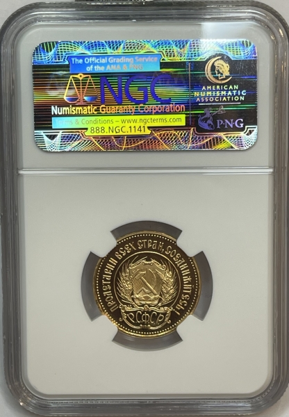 На аверсе в центре — герб РСФСР; по окружности сверху — надпись «ПРОЛЕТАРИИ ВСЕХ СТРАН, СОЕДИНЯЙТЕСЬ!», обрамленная кругом из точек; внизу под гербом - надпись «Р. С. Ф. С. Р.».