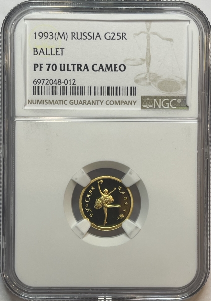 "Русский балет" - прочно устоявшееся в мировой культуре понятие, отражающее бесспорный авторитет русских хореографов, композиторов и артистов балета. Возникший во второй половине XVII в., русский балет занял к началу XX в. ведущее место в хореографическом искусстве. Слава русского балета, начавшись с Русских сезонов в Париже и Лондоне (1907-1914), организованных С.Дягилевым, с творческой работы легендарной балерины Анны Павловой, была приумножена Г.Улановой, М.Плисецкой, Е.Максимовой, В.Васильевым и другими российскими "звёздами", искусство которых получило признание во всем мире. В данную серию входят 20 монет из драгоценных металлов. Монеты одного достоинства, изготовленные качеством "пруф" и "анциркулейтед" ("а/ц"), имеют одинаковый дизайн.